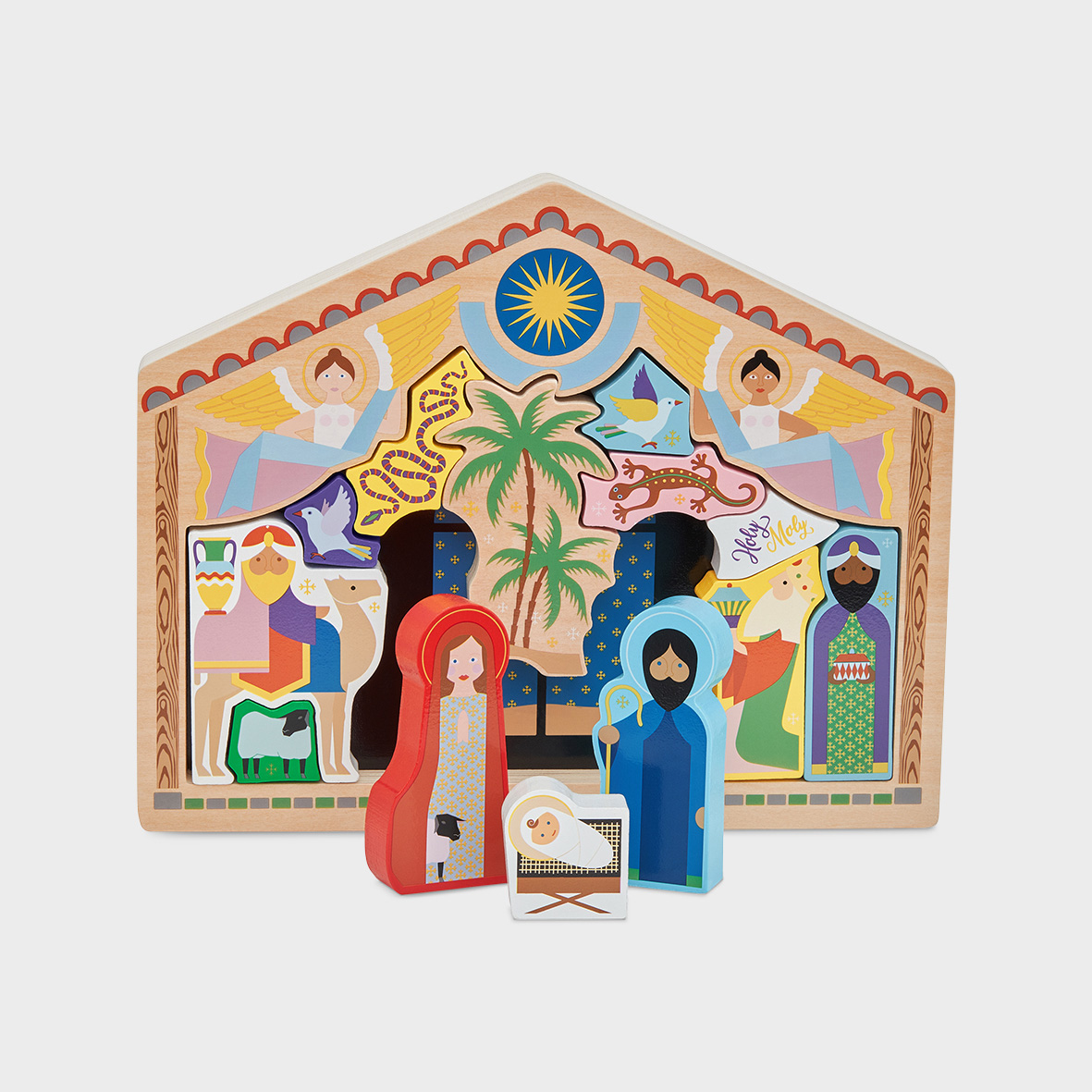 14 wooden pieces (1 stable, 13 figurines)