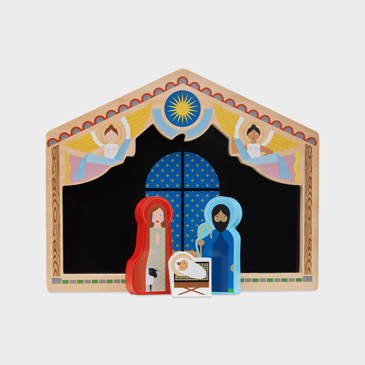 Nynke Tynagel's fascination with Christmas has been translated into “ The Crib” a modern nativity scene. Her signature is clearly reflected in the language of form and the use of colour. Working with icons, which typifies Nynke's signature, has a clear translation in this beautiful work. It’s an object to exhibit in your home every year during the Christmas season.