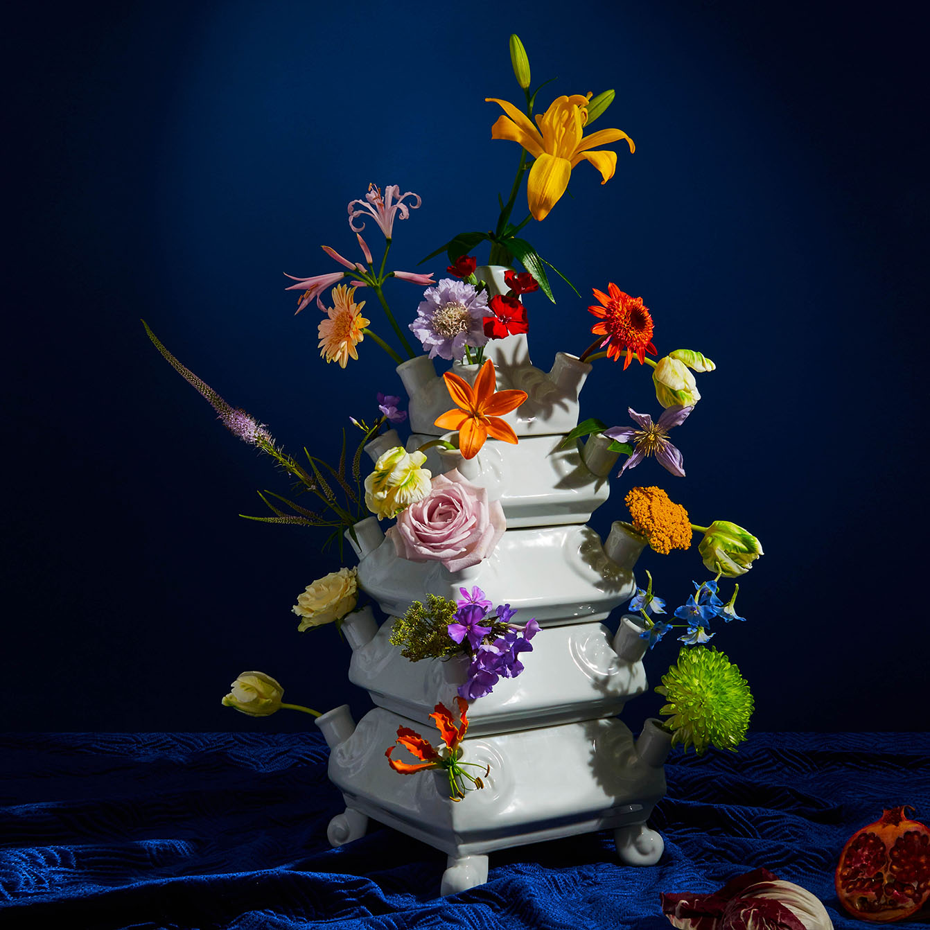 Designed by &K for Rijksmuseum Amsterdam. The design is based on a Flower Pyramid, Delft 1692-1700, made in the Pottery 'De Metalen Pot by Lambertus van Eenhoorn'. Caracterized by the pagoda shape. This vase is crafted in fine glazed porcelain.
