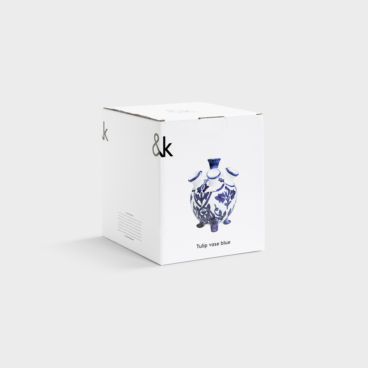 Inspired by the Dutch delfts blue prints, the tulip vase blue. Perfect for small flowers. Made of porcelain and also available in white. Rinse with lukewarm water.