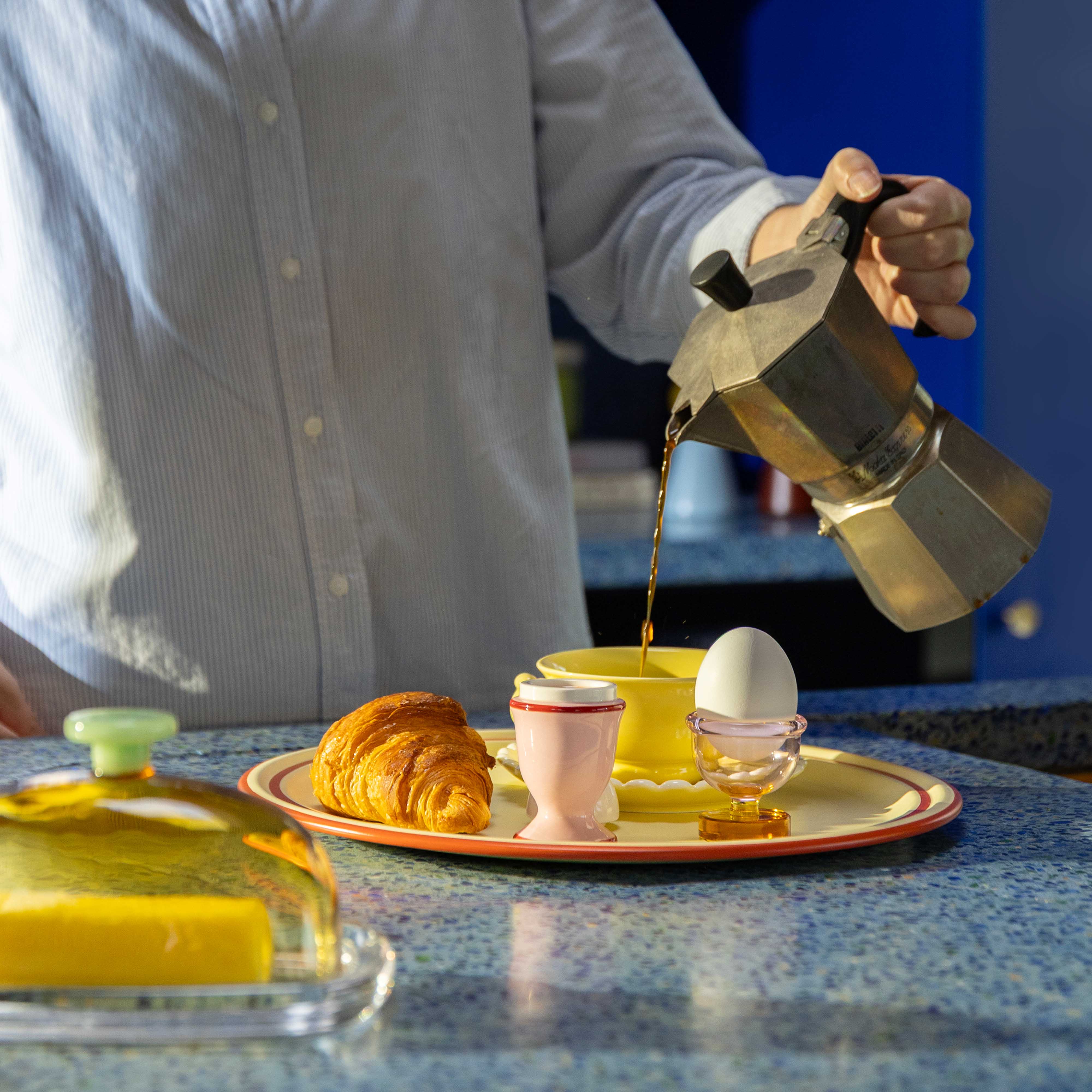 How do you like your egg? The salt & pepper egg makes it simple! The set comes in two pieces: the egg on top and the cup underneath. One holds salt, the other pepper, both refillable from the bottom. A playful and cheeky addition to your breakfast table that makes every meal a little more fun.