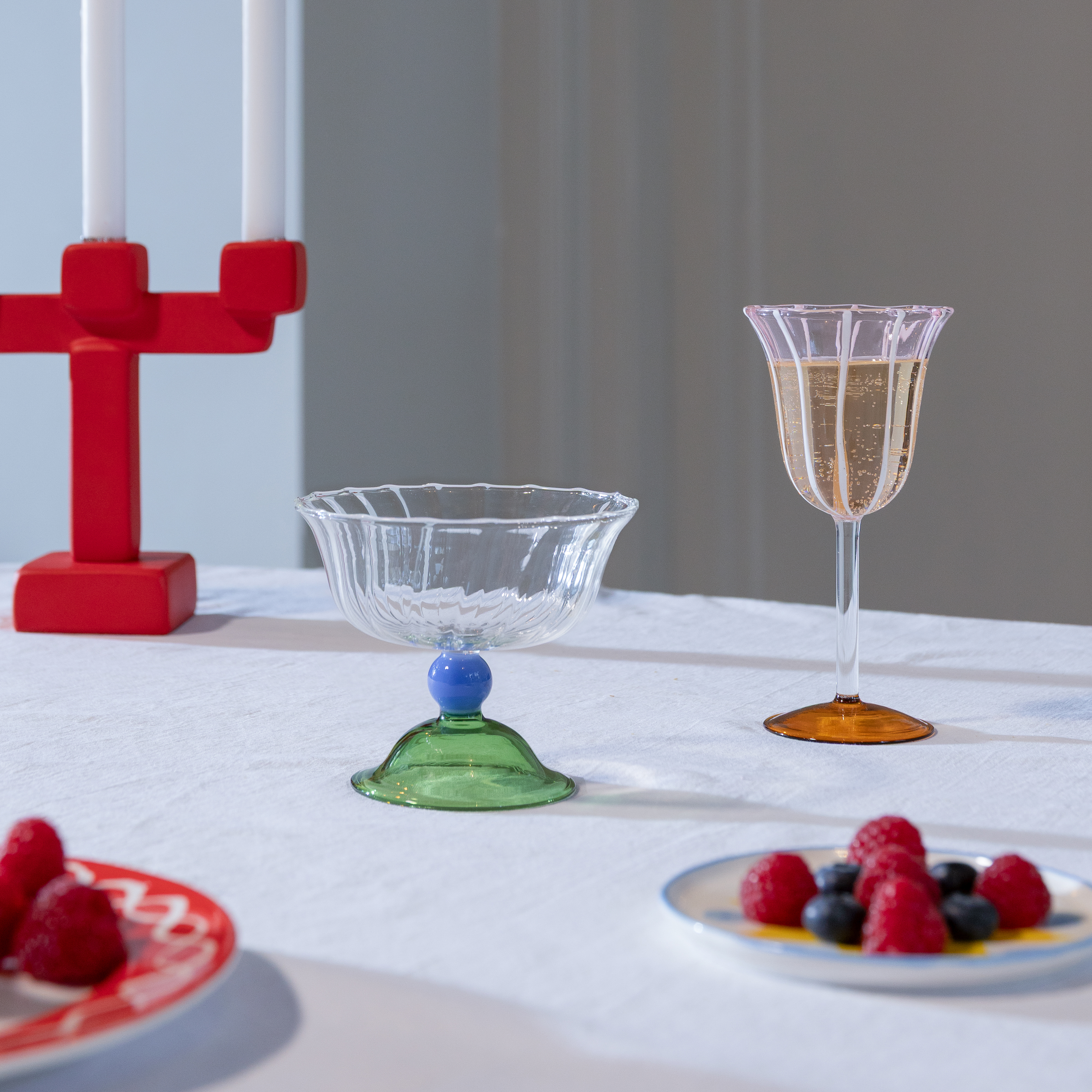 The tulip coupe is a graceful extension of our beloved tulip glass series. Crafted from colored borosilicate glass, its elegant shape is perfect for serving both sweet and savory dishes. Whether it’s a decadent dessert or a flavorful appetizer, this coupe adds a refined touch to your table setting.